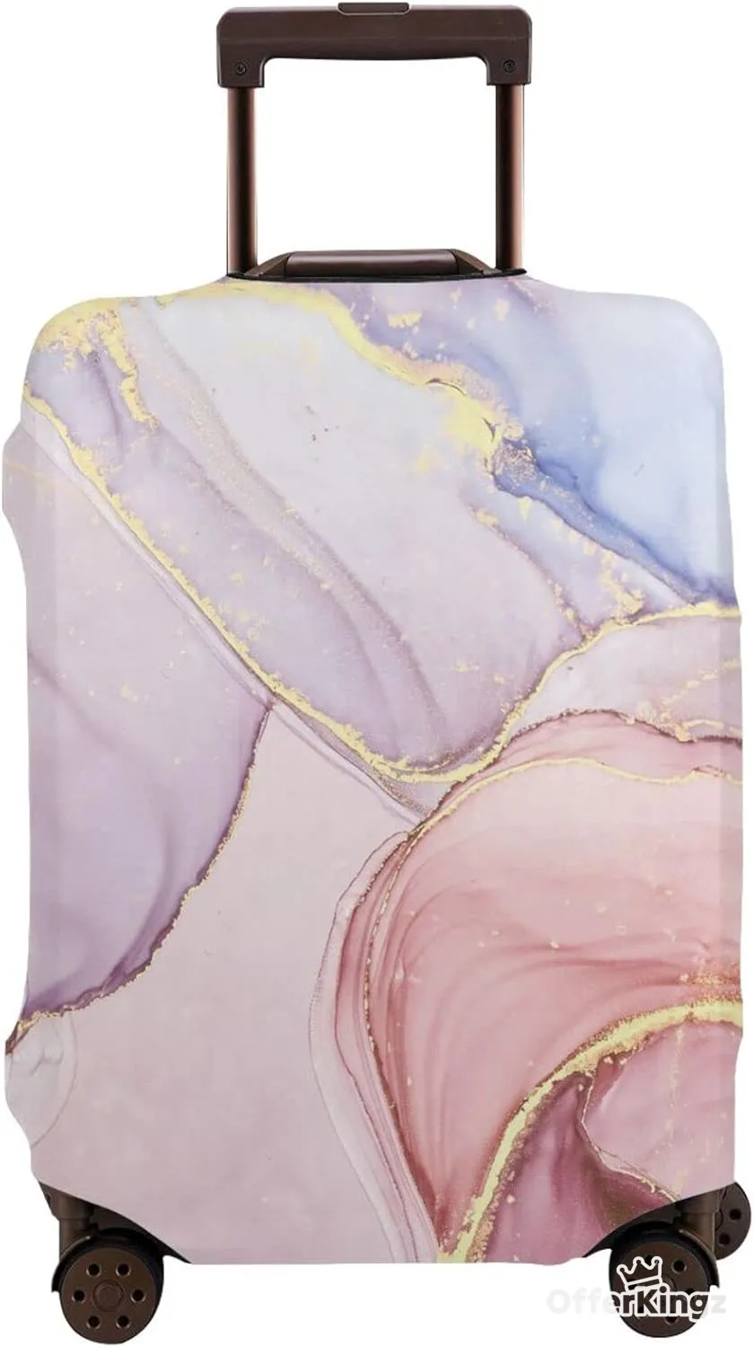 Travel Suitcase Protector Pink Purple Marble Color Gold Stripe Elastic Protective Washable Luggage Cover with Concealed Zipper Suitable for S(18-21in)
