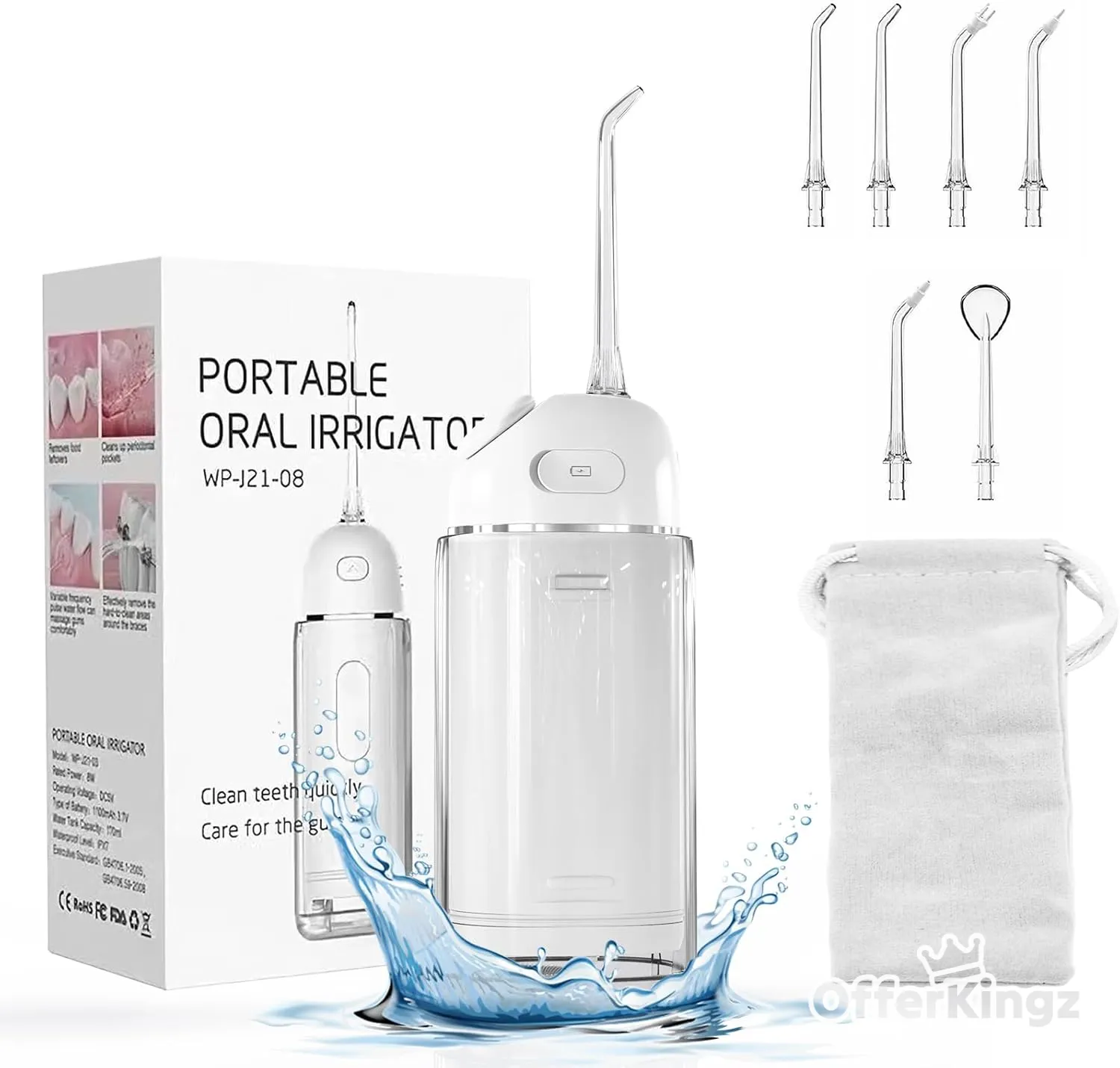 Portable Water Dentle Flosser-EXQUISITIE Cordless Mini Best Rated Water Pick for Teeth Cleaning with 3 Modes 6 Jet Tips