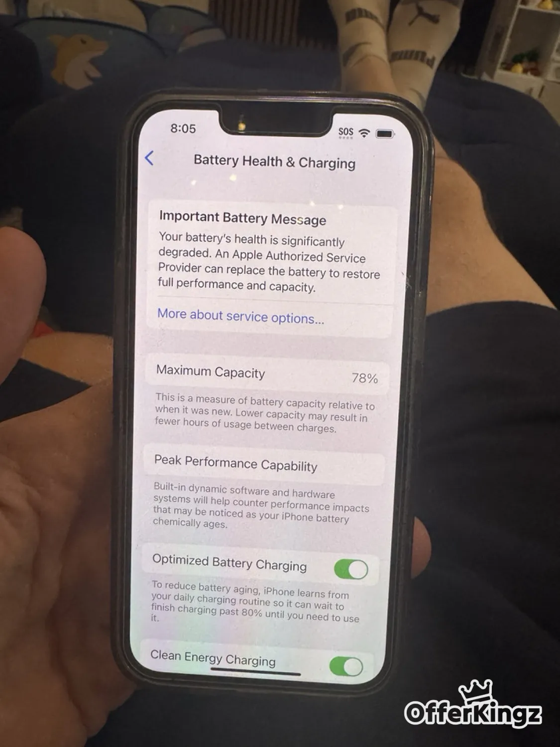 This phone is in nearly perfect condition, see photos. The screen has never cracked or been replaced, the chrome edges are all very nice still. Has always had multiple layers of protection. This will ship phone only and is great cosmetic condition. Device has been signed out of iCloud and is ready to set up. Battery level is diminished to ~78% compared to a brand new device (pictured), which is to be expected for a phone a few models old, but phone still lasts all day under my regular use.