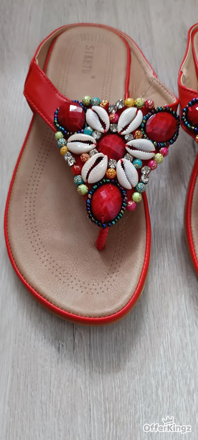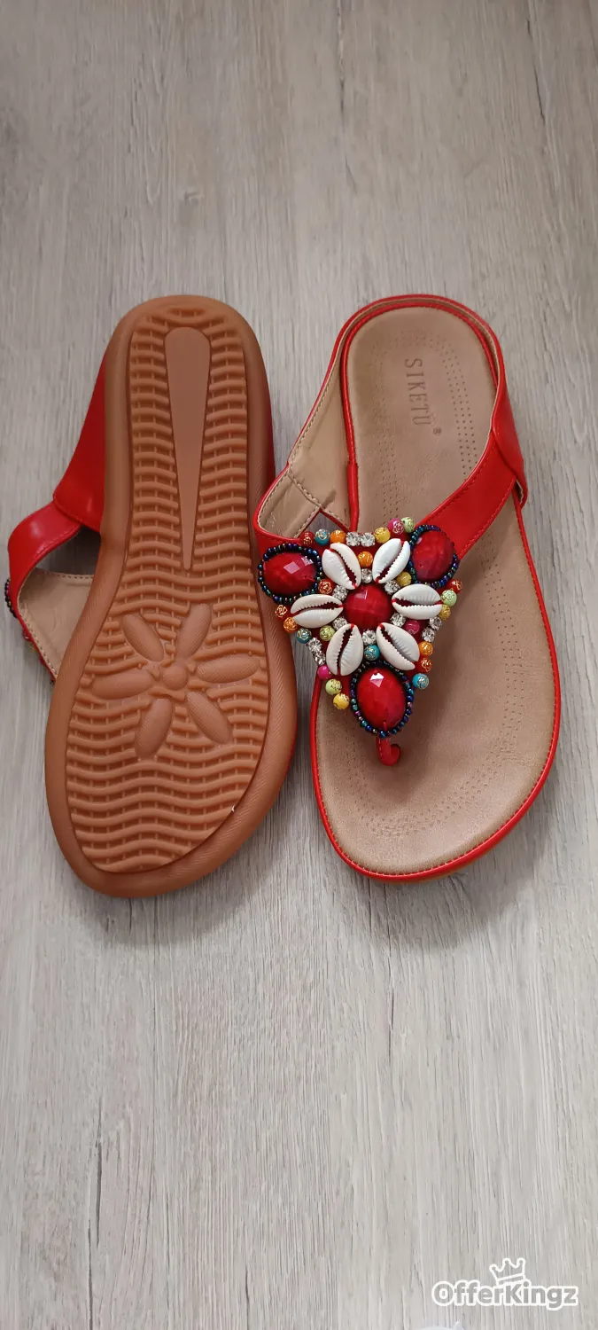 A brand new women's slippers flip flops red size EU 36 China size 37 leather insoles and rubber sole very nice and stylish.