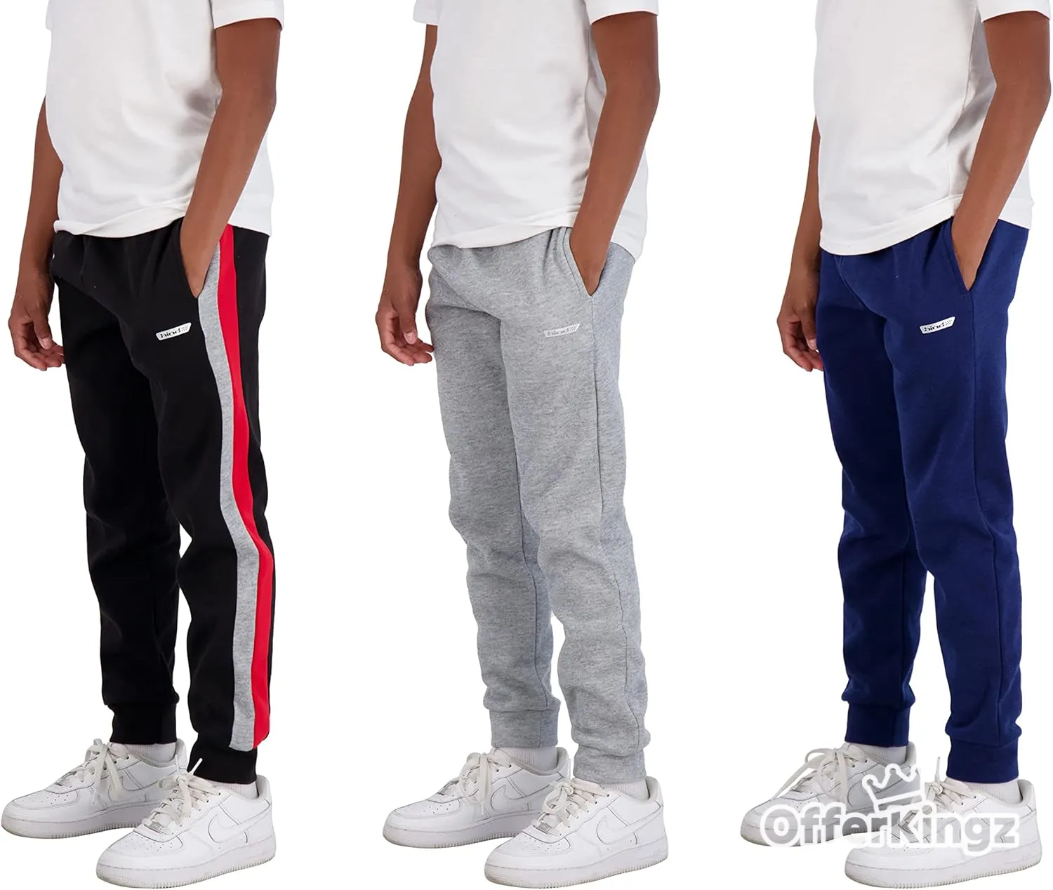 Boys 3-Pack Fleece and Tricot Jogger Sweatpants with Pockets for Athletic & Casual Wear