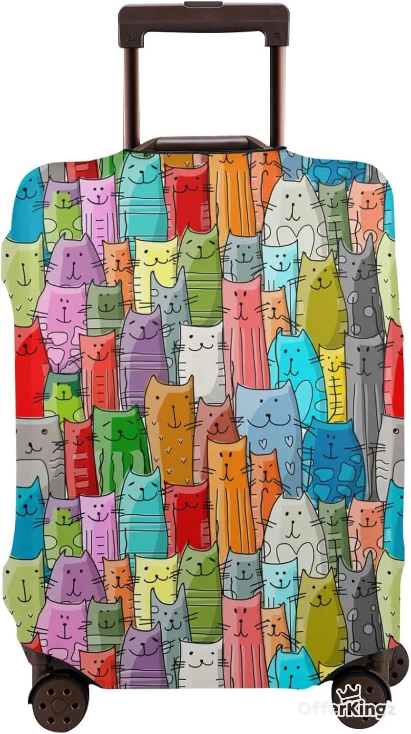 Travel Suitcase Protector Colorful Cats Elastic Protective Washable Luggage Cover with Concealed Zipper Suitable for L(25-28in)