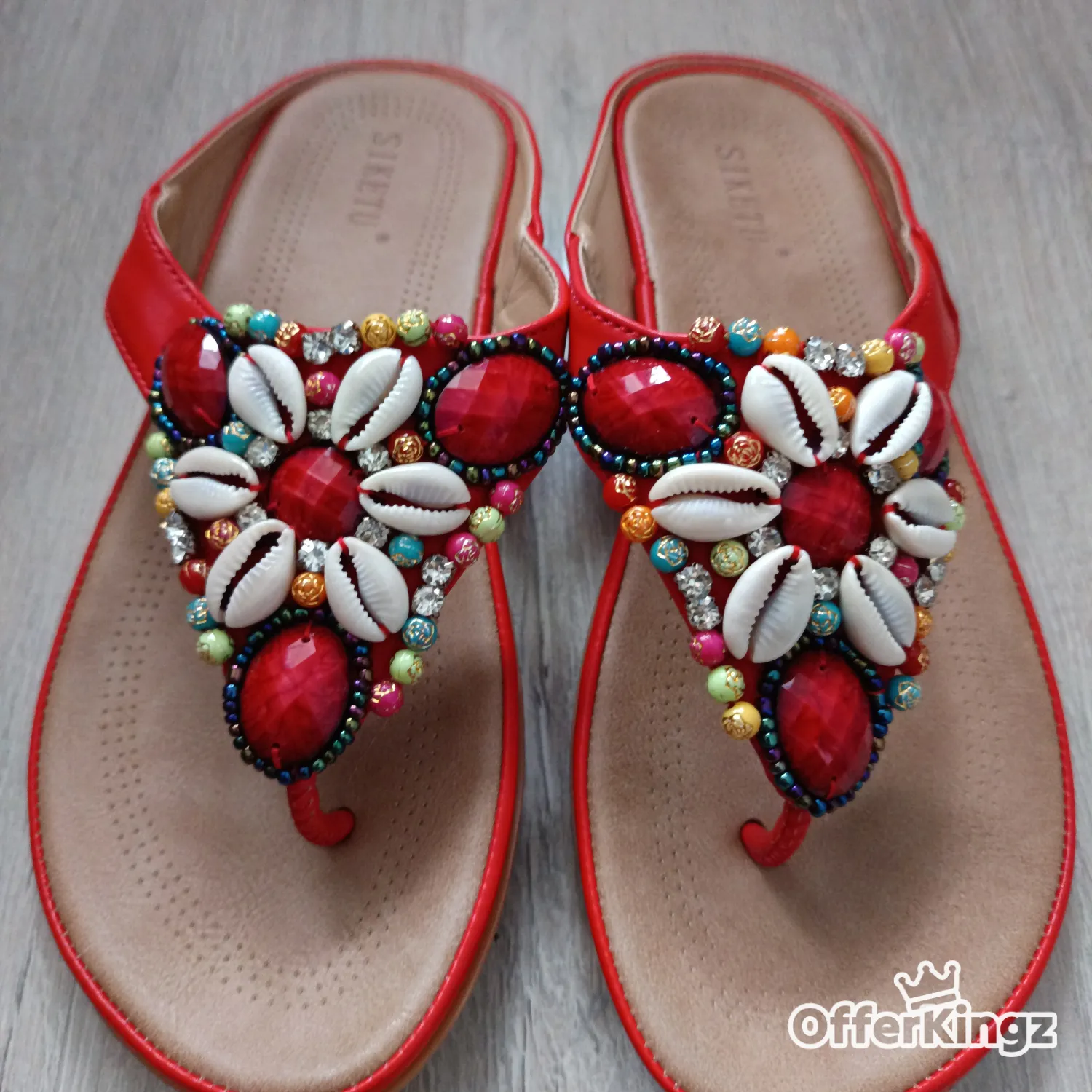A brand new women's slippers flip flops red size EU 36 China size 37 leather insoles and rubber sole very nice and stylish.