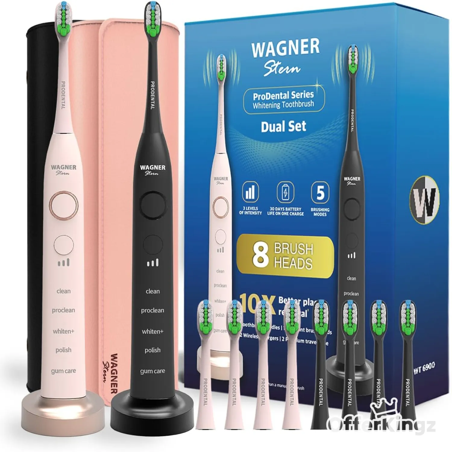 Wagner & Stern ProDental Series Electric Toothbrush 5 Brushing Modes and 3 Intensity Levels, 8 Dupont Bristles, Premium Travel Case.