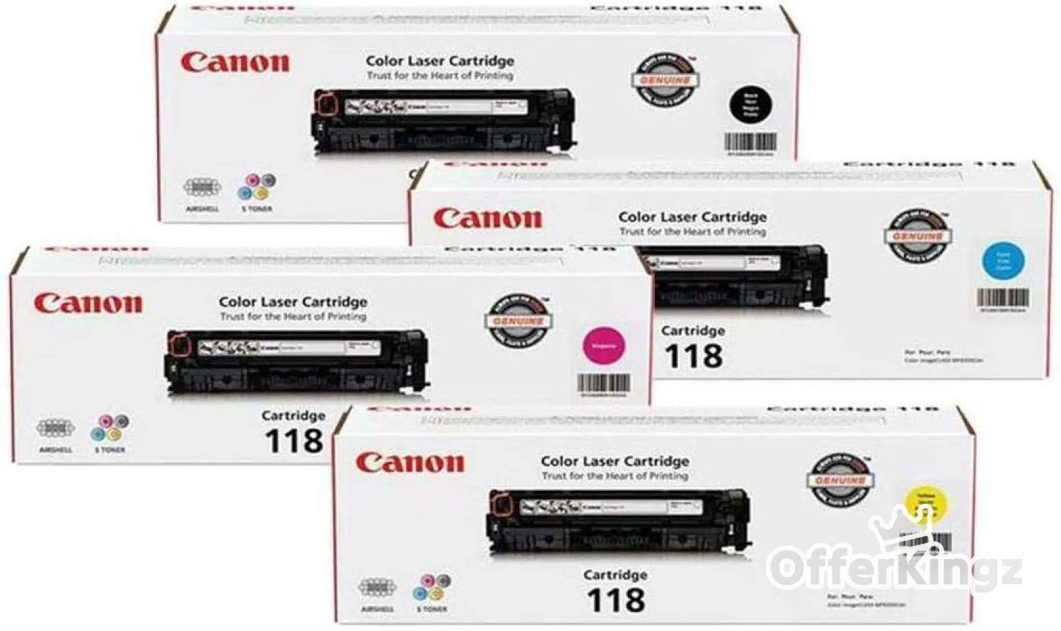 Canon 118 Toner Cartridge Bundle for imageCLASS MF8350/MF8580 Color Laser Printer/Black/Cyan/Magenta/Yellow