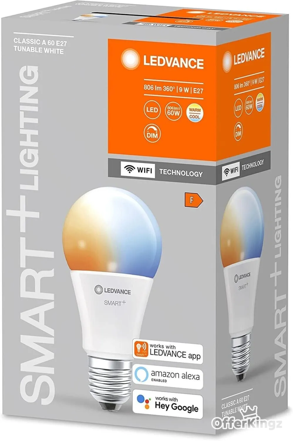 • Produkteigenschaften: Steuerbar über LEDVANCE SMART+ WiFi App. Steuerung über Google Assistant oder Amazon Alexa möglich. Netzwerkprotokoll: WiFi. Lichtfarbe über Tunable White einstellbar: Warmweiß bis Kaltweiß (2.700…6.500 K). Dimmbar. Lebensdauer: bis zu 15.000 h.