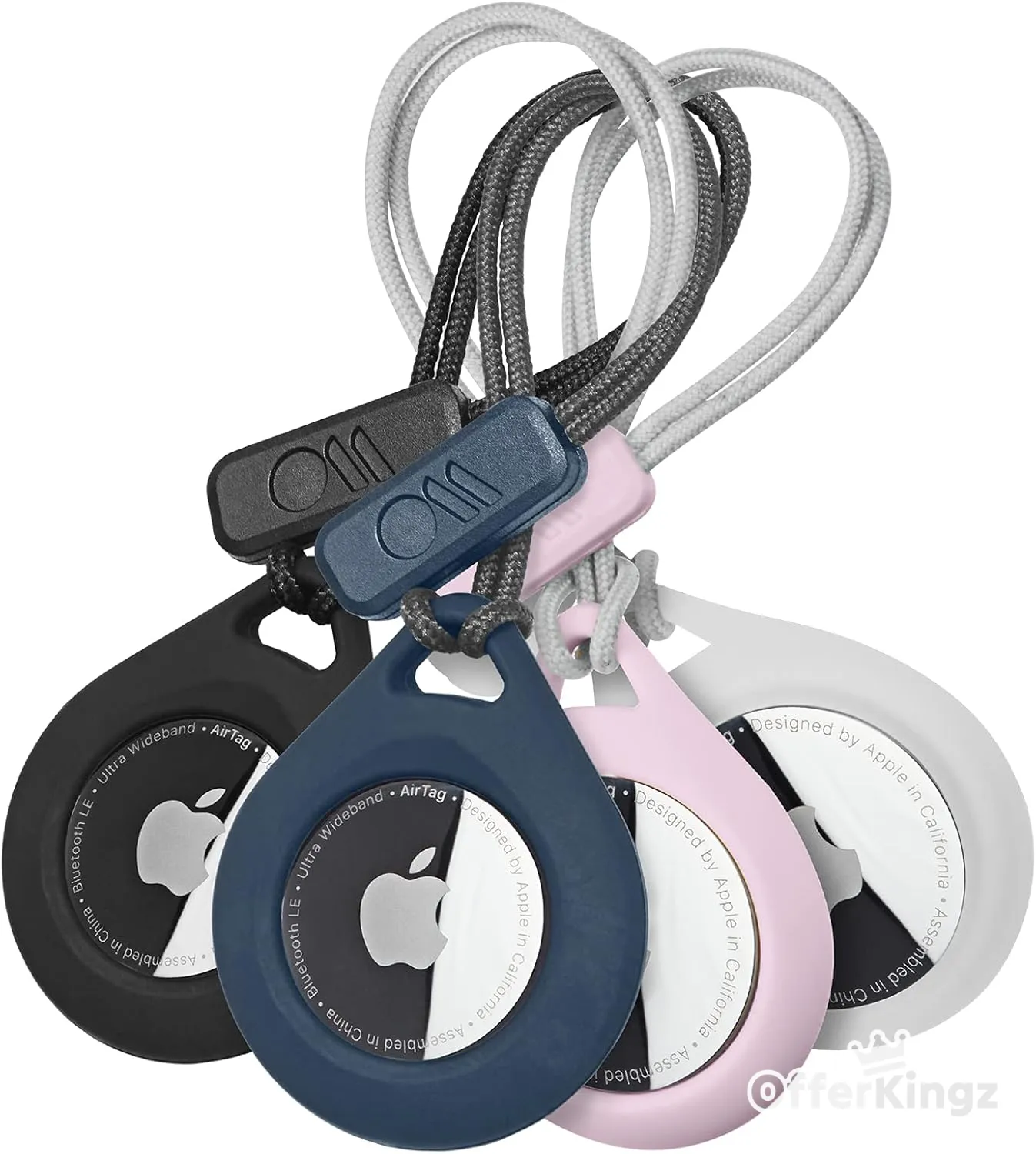 Case-Mate AirTag Holder - Case Holder For Apple AirTags w/ Rugged Strap - Protective Hard Shell AirTag Keychain for Dog & Cat Collar, Keys, Luggage, Backpack - 4 Pack (Clear, Black, Navy, Blush)