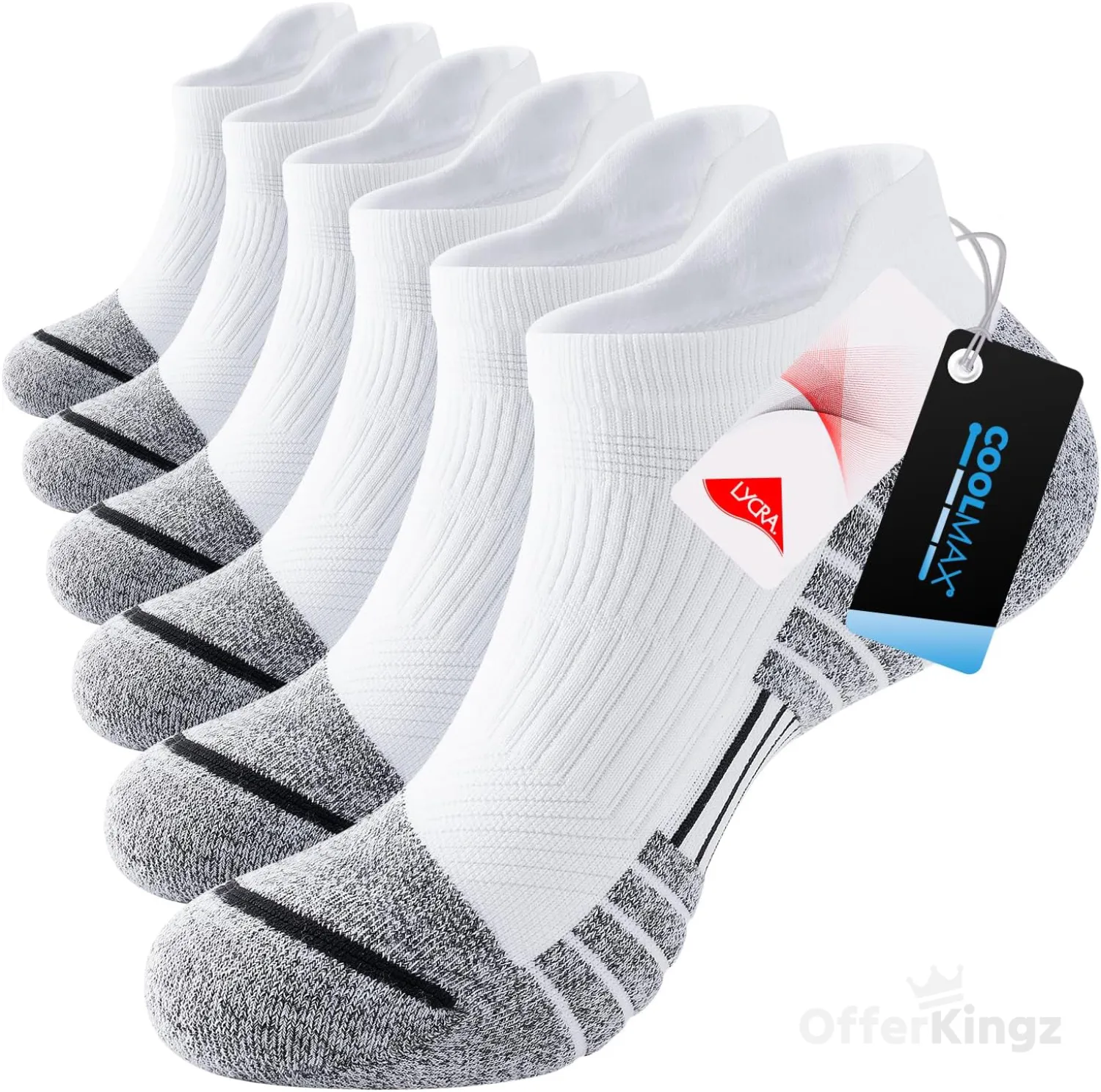 No Show Running Athletic Socks Coolmax Moisture Wicking Compression Cushioned Socks for Mens Women 3 Pairs