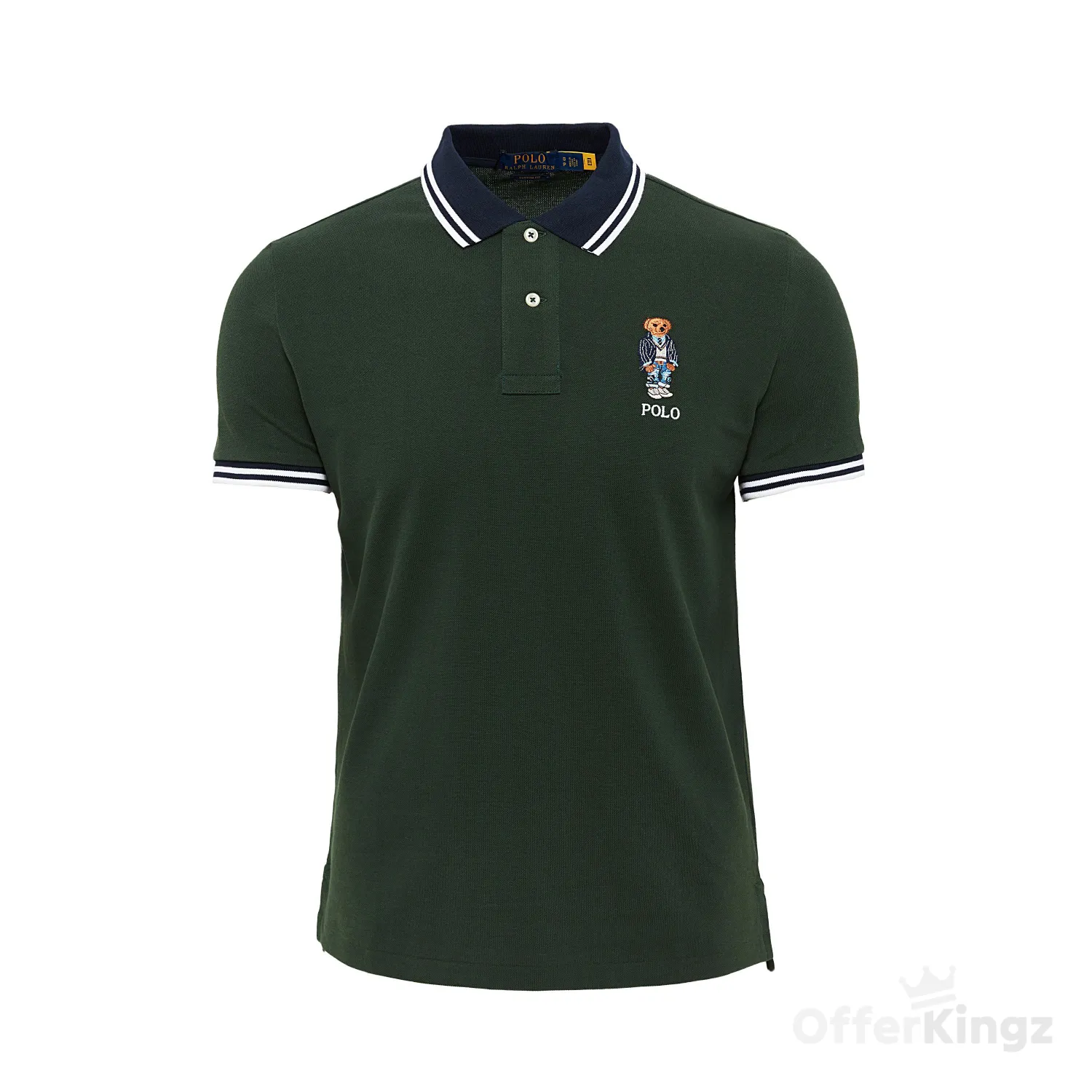 Ralph Lauren Herren Polo Kragen T shirt S Grün Baumwolle Logo Bär NEU