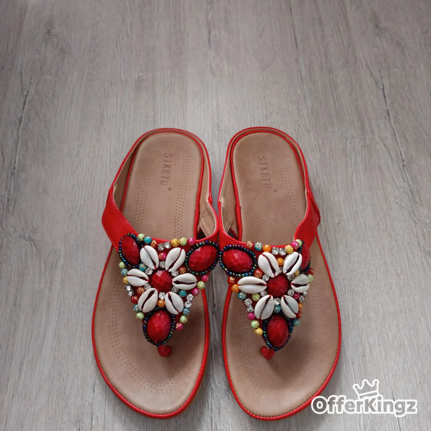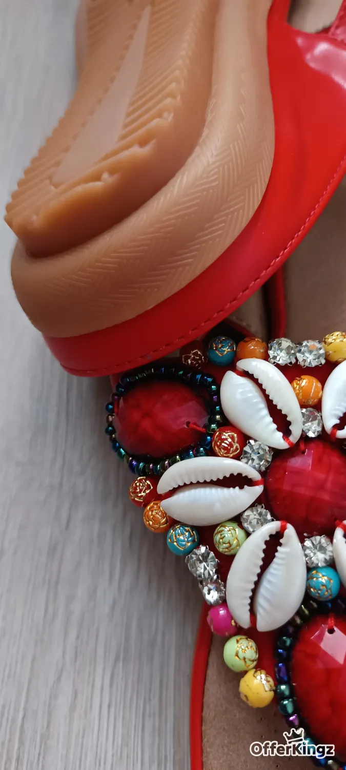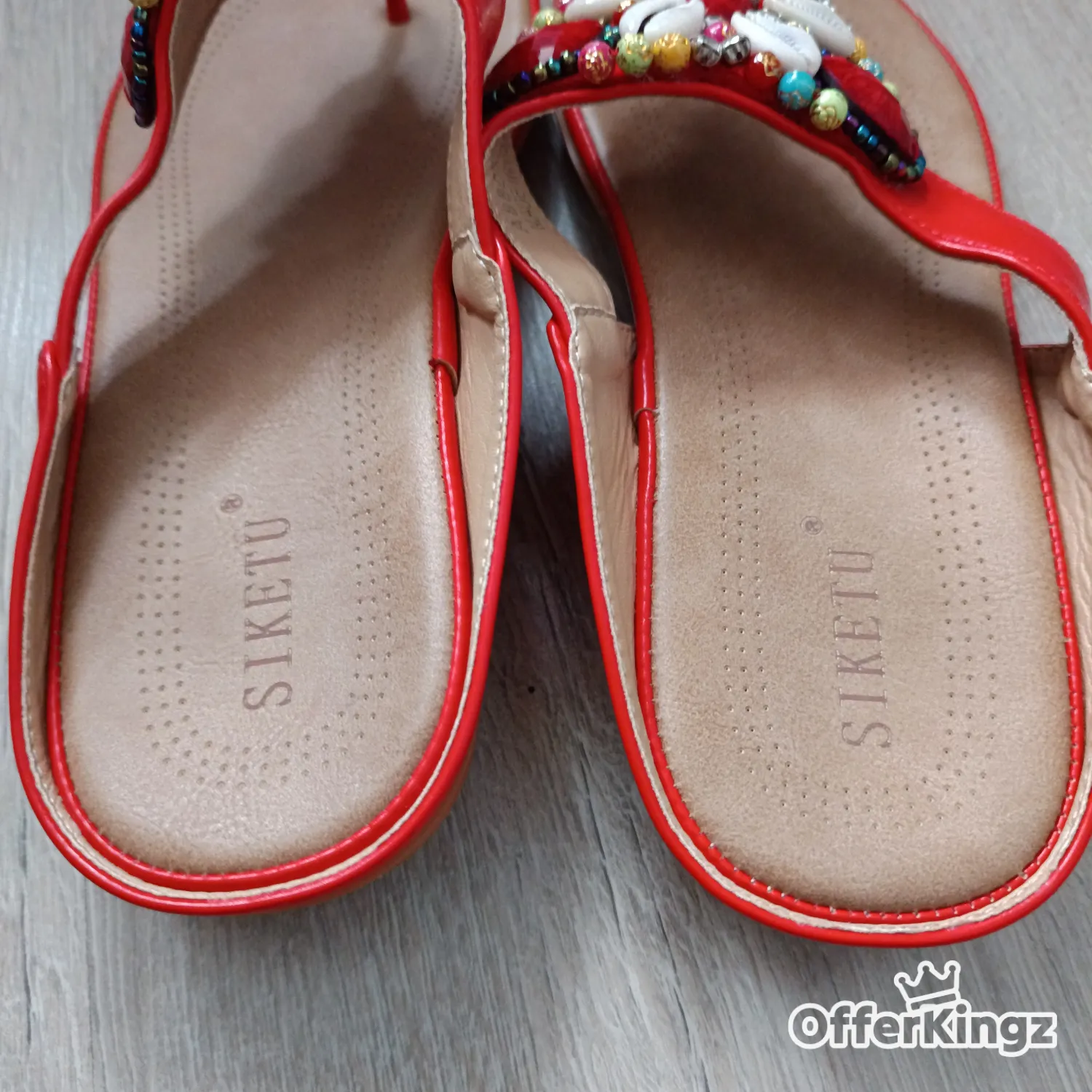 A brand new women's slippers flip flops red size EU 36 China size 37 leather insoles and rubber sole very nice and stylish.
