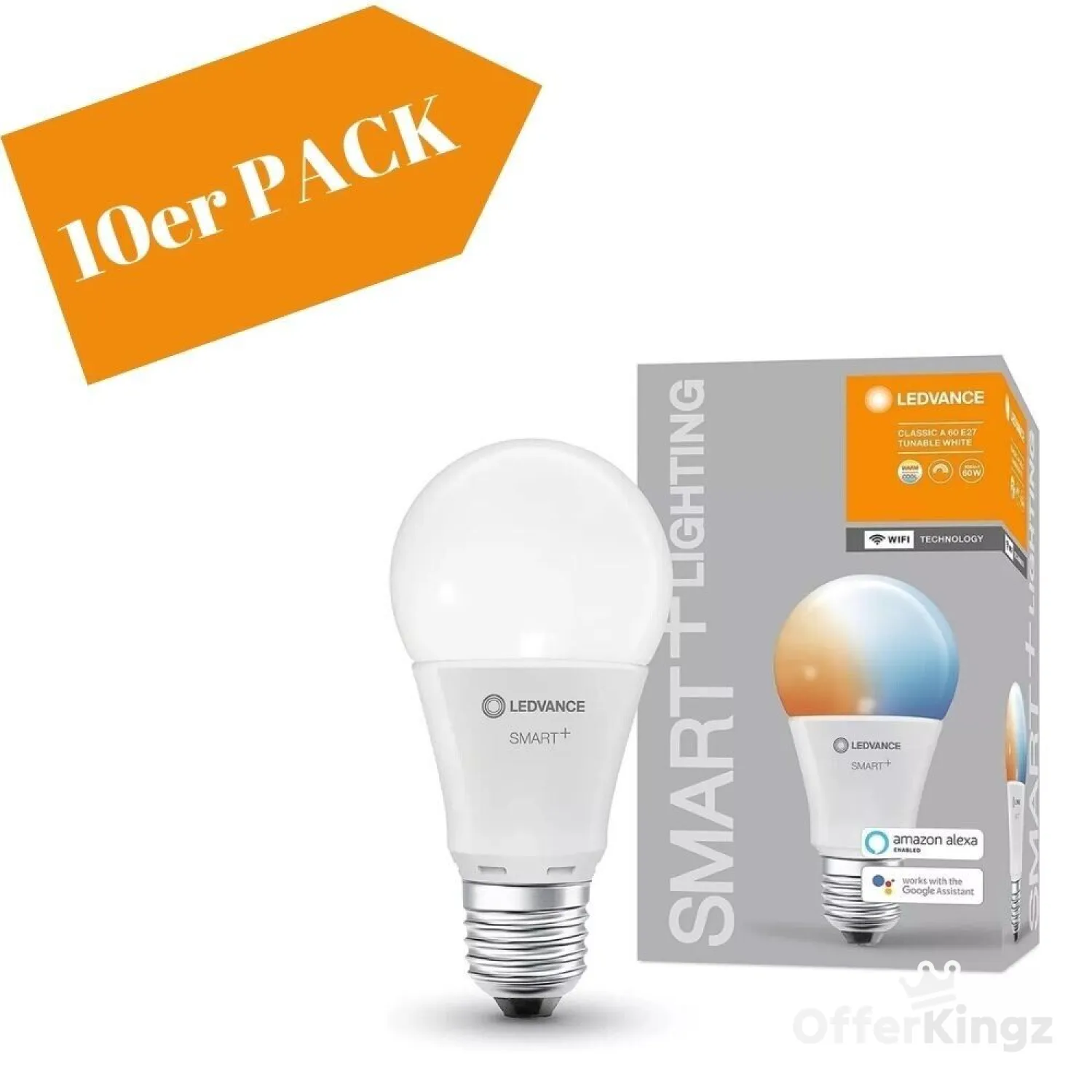 • Produkteigenschaften: Steuerbar über LEDVANCE SMART+ WiFi App. Steuerung über Google Assistant oder Amazon Alexa möglich. Netzwerkprotokoll: WiFi. Lichtfarbe über Tunable White einstellbar: Warmweiß bis Kaltweiß (2.700…6.500 K). Dimmbar. Lebensdauer: bis zu 15.000 h.