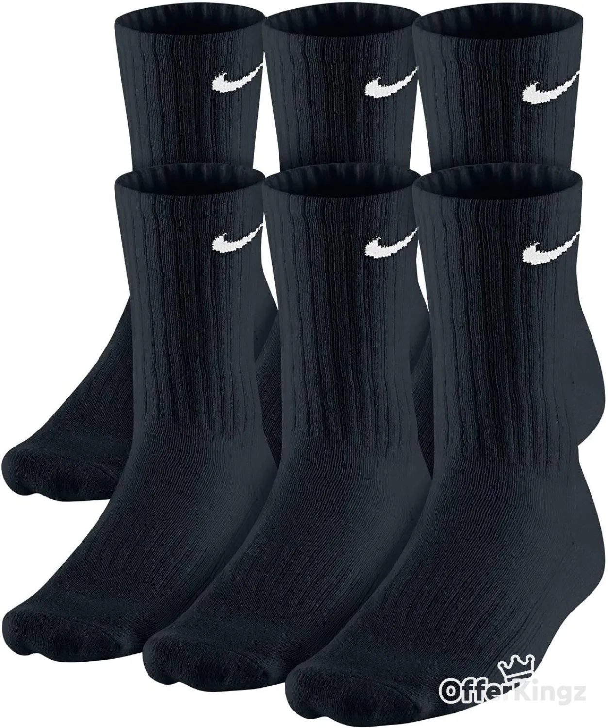 NIKE Dri-Fit Training Cotton Cushioned Crew Socks 6 PAIR Black with White Signature Swoosh Logo) LARGE 8-12