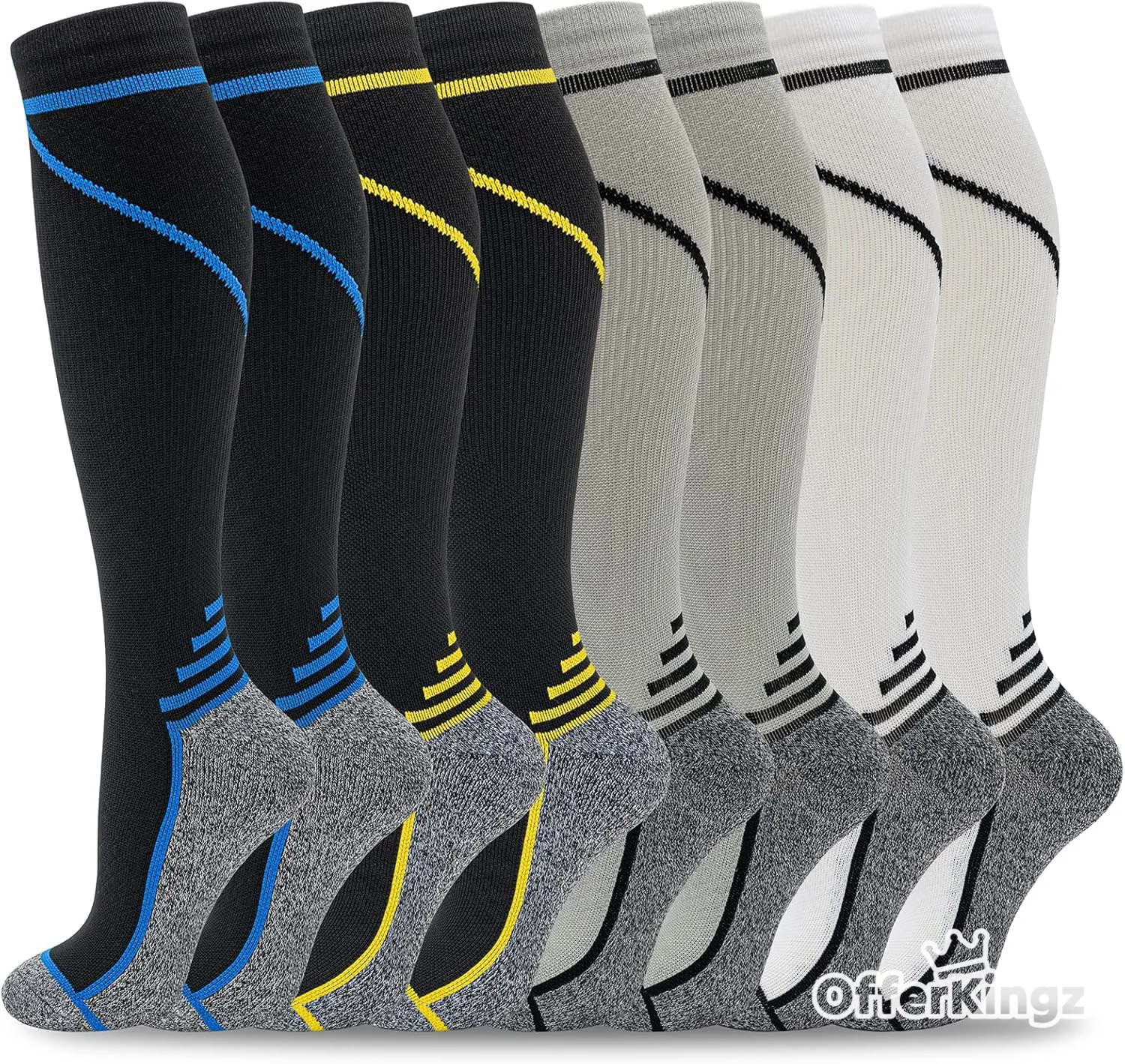 8 Pairs Compression Socks for Men & Women 20-30 mmHg Knee High Nurse Pregnant Running Medical and Travel Athletic
