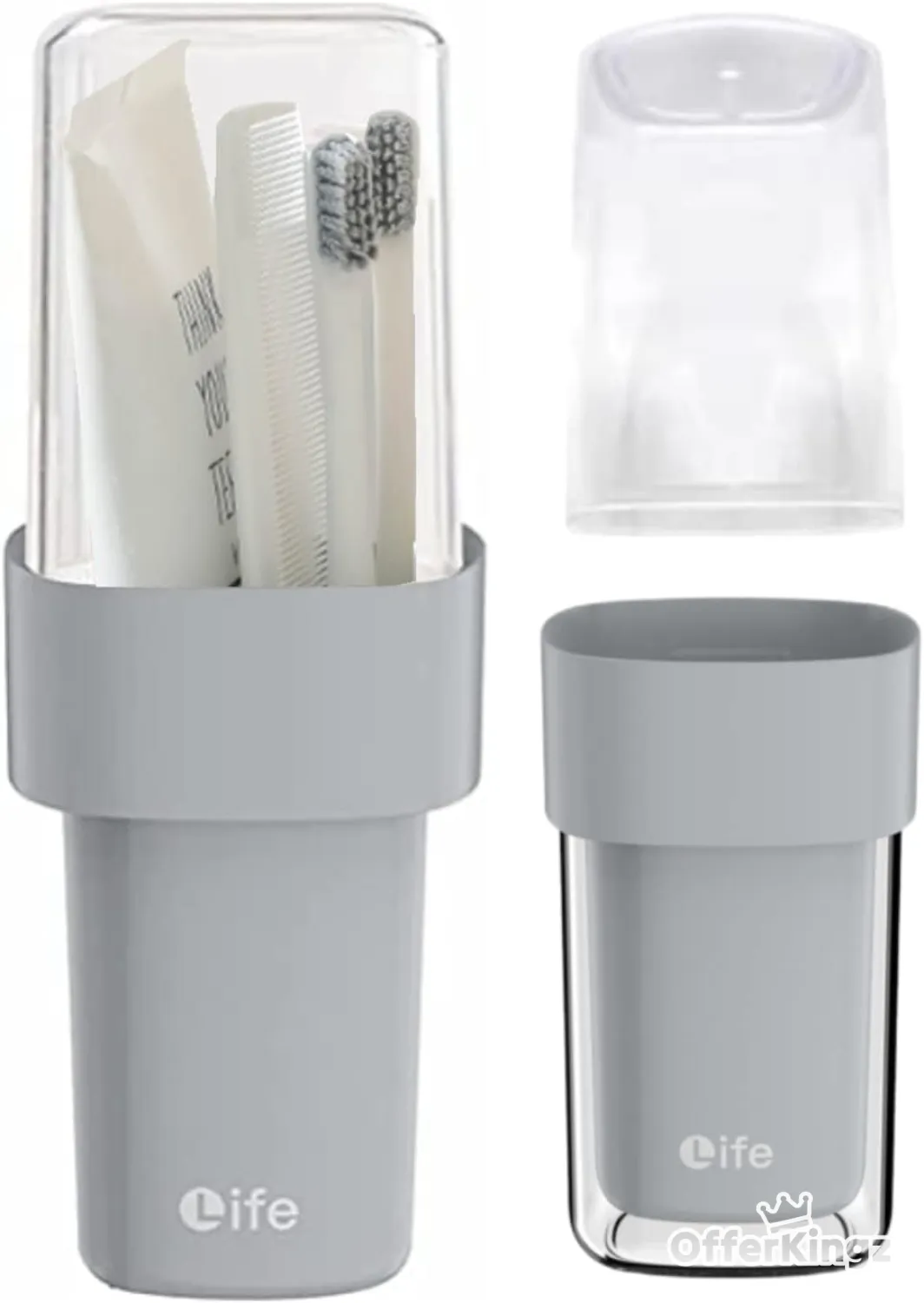 Travel Toothbrush Case for Regular and Electric Toothbrushes (Oral B Philips), Personal Hygiene Items Case for Two, Large Capacity for Toothpaste Shaver, Towels, Perfect for Business and Personal Travel (Grey)