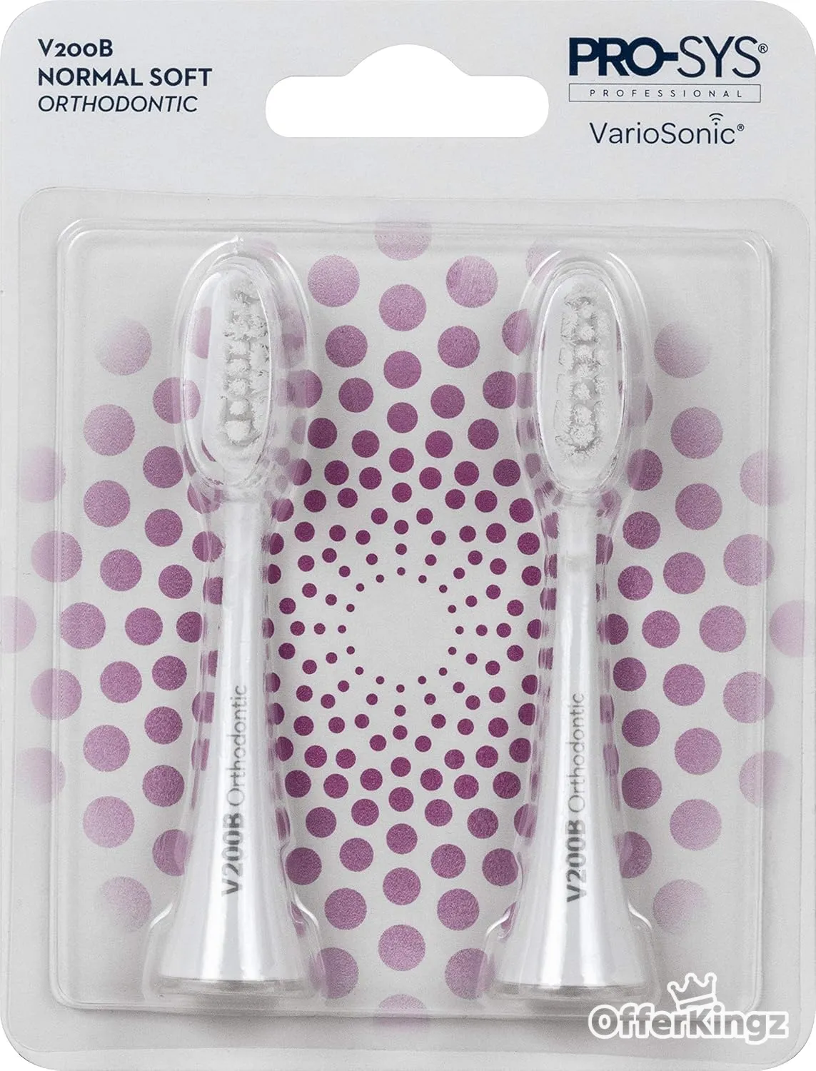 PRO-SYS VarioSonic V200B Normal Soft Orthodontic Replacement Heads, Pack of 2. Also fits Burst Brush!