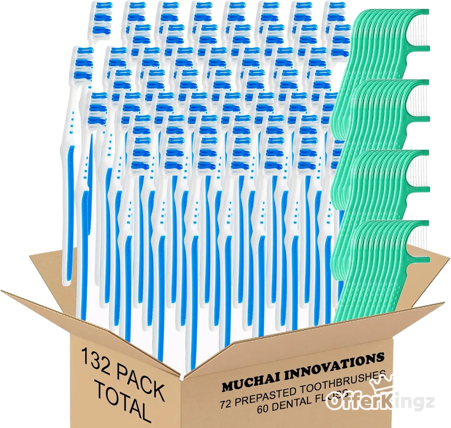 Prepasted Disposable Toothbrush Individually Wrapped Regular Size Head Soft Bristle Hygienic 72 & Oral Dental Floss Fresh Mint Toothpick 60 | Travel Camping Office School Supply Hotel Airbnb Gift