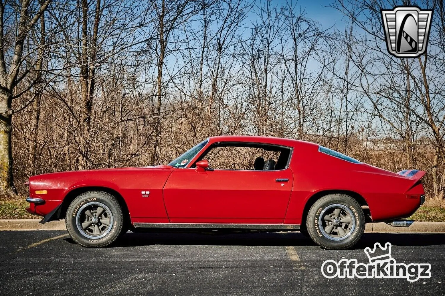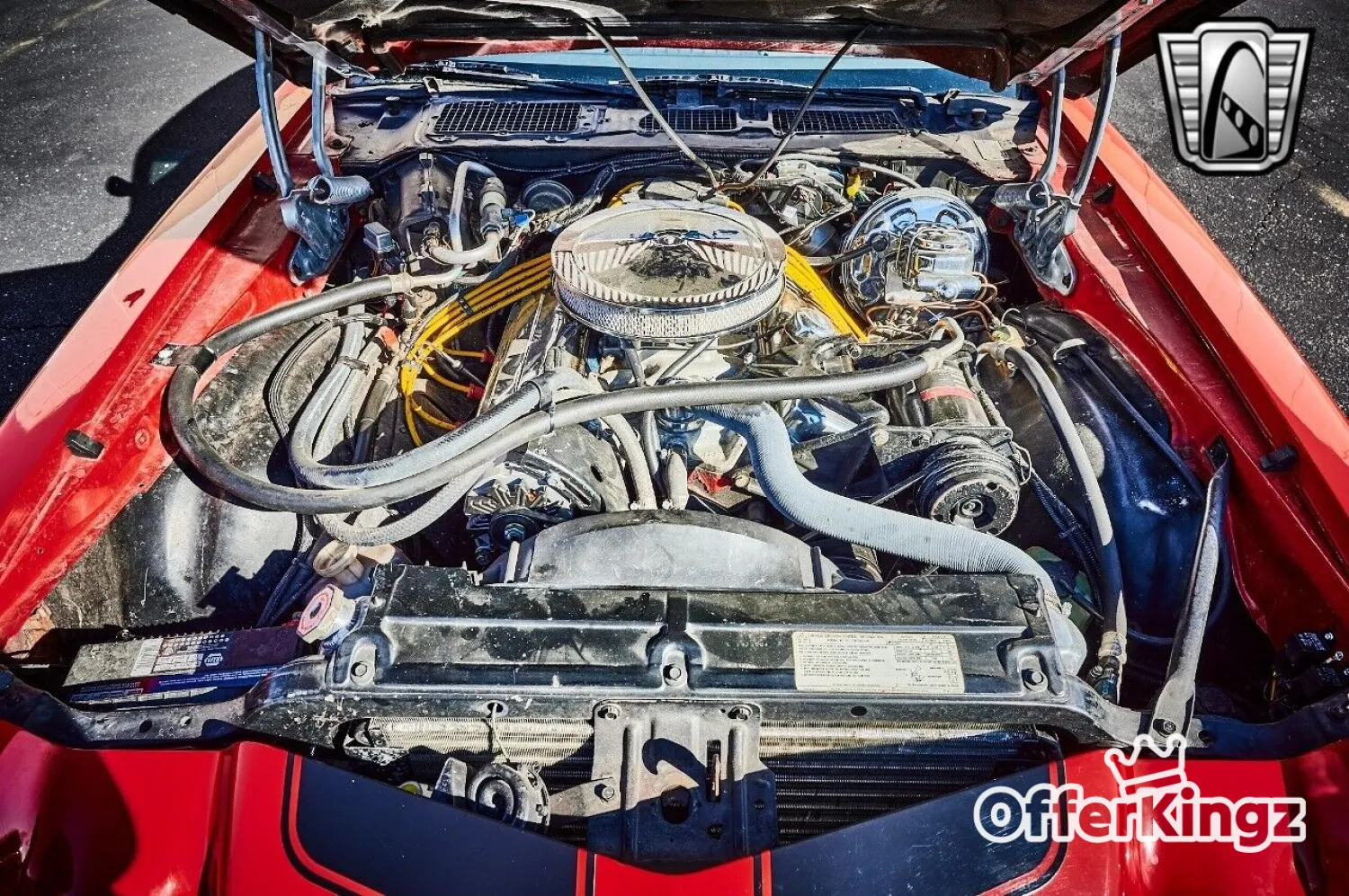 This Gorgeous split bumper is boasted by the owner to be a 396 C.I. with a holly sniper paired with a 4 speed automatic transmission and plenty of character. This split bumper dripping in race red paint and black ralley stripes will catch the eye of everyone as you go cruising/Rocketing by.