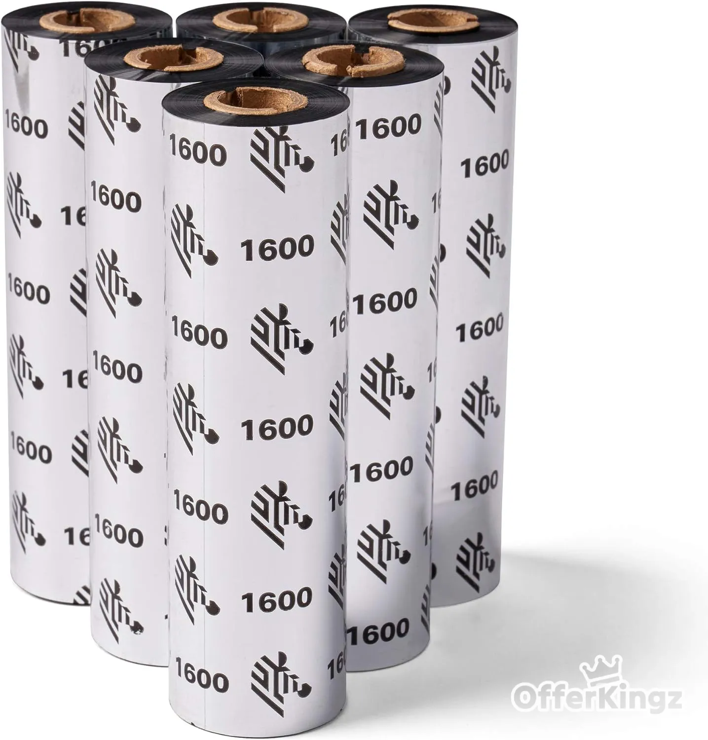Zebra Standard Black Wax Ribbon for Thermal Transfer Desktop Printers Width 4.33 in Length 242 ft 0.5 in Core Pack of 6 Rolls Compatible with Multiple Models 10031723SP
