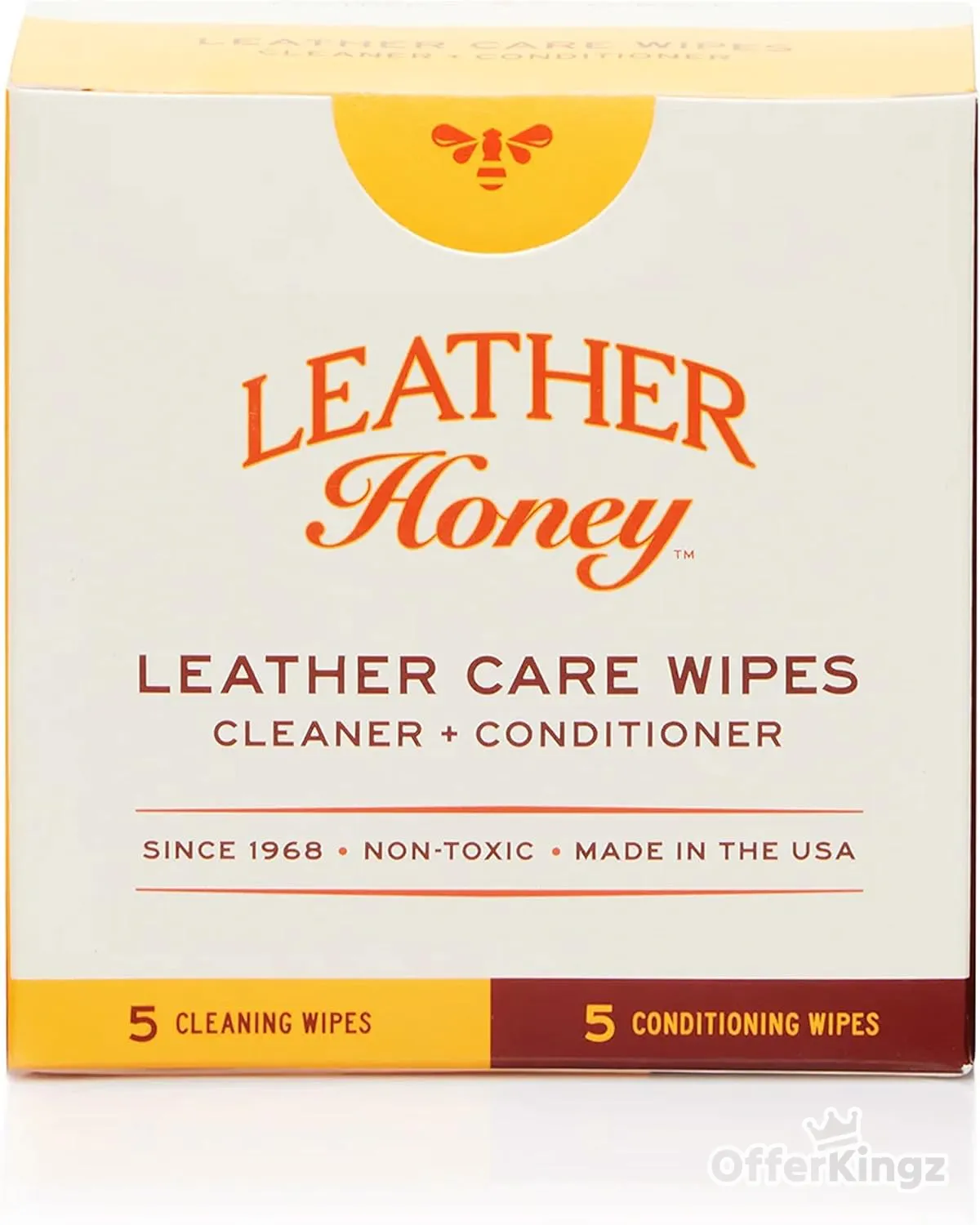 Leather Honey Leather Care Wipe Kit - Clean and Condition Leather On-The-Go - The Best for Vinyl and Leather Apparel, Furniture, Auto Interior, Shoes and Accessories - 5 Cleaner/5 Conditioner Wipes