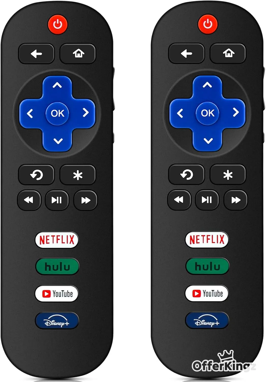 2 Pack Universal Replacement TV Remote Control for Roku TV, for TCL/Hisense/Sharp/Philips/Onn/Element/Insignia Roku TV,with Shortcut Buttons Netflix/Disney+/Hulu/YouTube (NOT for Roku Stick or Box)