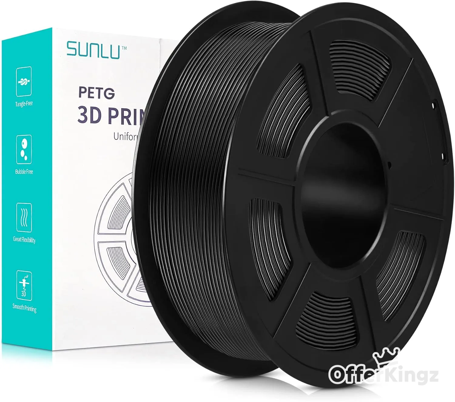 SUNLU 3D Printer Filament, Toughness PETG Filaments for 3D Printing, Neatly Wound Filament, High Strength, Better Flow of SUNLU No Clogging Premium PETG Filament 1.75 +/- 0.02 mm, 1KG Spool, Black